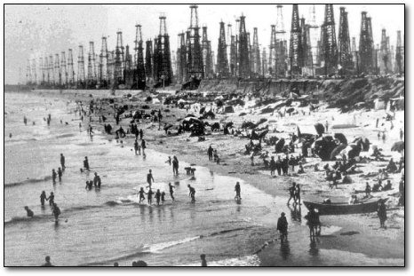 这里不是德克萨斯,也绝对不是沙特阿拉伯。这张照片摄于1928年的加利福尼亚的亨廷顿海滩。在当时,如果你看到一只水獭身上没有石油的话,简直就是这片社区的“耻辱”。