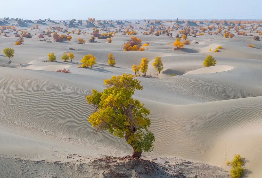 金秋10月,塔克拉玛干沙漠里的胡杨金叶婆娑,迎来了它最美的季节。中国冶金报记者 顾学超摄