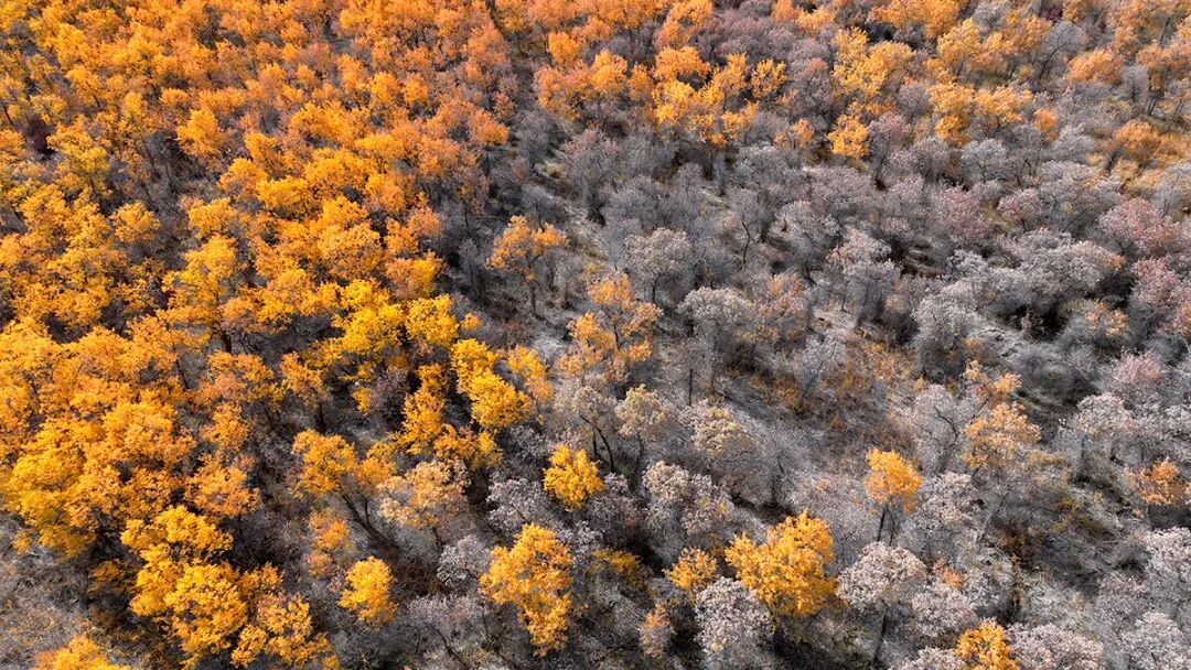 10月中旬,新疆阿拉尔胡杨美景进入观赏期,随处可见的胡杨景致异彩纷呈,令民众流连忘返。任海霞摄