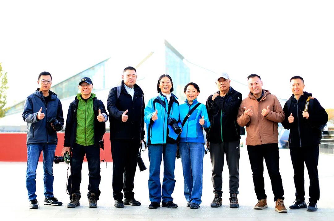 主流媒体采访团在三五九旅屯垦纪念馆前合影。第一师阿拉尔市融媒体中心 杜新民 摄