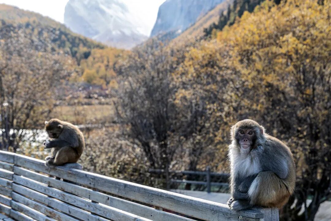 在稻城亚丁景区,藏酋猴在晒太阳