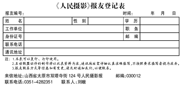 《人民摄影》报友登记表