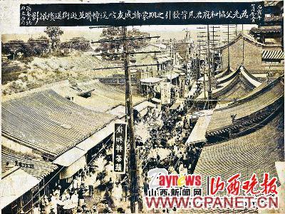 一张拍摄于民国时期丙寅年的钟楼街照片,不仅见证了82年前太原市最繁华商业街的盛景,更主要的是它还呈现出整条街流芳百年的十几家老字号名店的故址旧貌。昨日上午,记者在迎泽区文庙社区居住的高天赐家,见到了这张珍贵的照片。