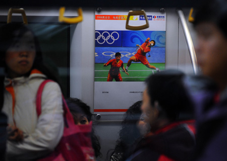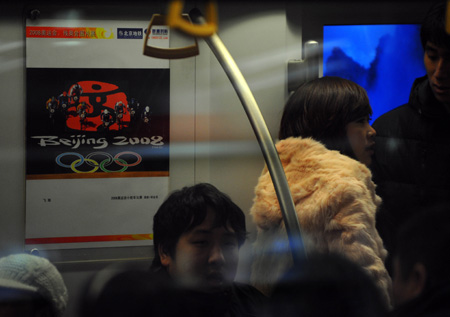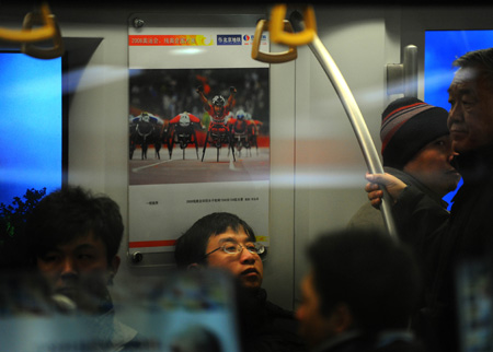 近日,五位亲身参与了奥运采访的摄影记者将他们拍摄的1500幅奥运摄影作品,悬挂在有“流动艺术馆”之称的地铁车厢内展出,这个展览是由北京地铁公司和联通时科联合举办的,展览位置设在地铁1号线(苹果园至四惠东)、2号线(原地铁环线),为北京举办奥运会而更新的新型列车车厢内。照片展位将分布在53列地铁列车的318个车厢内。