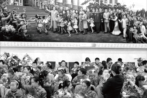 2007年11月16日,北京人民大会堂,少先队员们准备向我国援非的100名专家及青年志愿者献花。