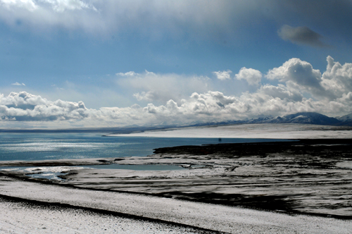 后来的数天里,经吉隆、萨嘎、帕羊,我们来到了玛旁雍错湖边。玛旁雍错被尊奉为圣湖,而在佛教经典中它更是被称为"世界江河的母亲"。站在山顶高高的玛尼堆旁,整个玛旁雍错猝不及防地跃进眼帘--一种无法形容的蓝,天空大概是融化在湖水里的吧,更加地透彻玲珑。湖水大概是镇过千年寒冰的吧,幽幽的,泛着冷玉的晶莹,带些旷古的微凉气息。这一切,让人身不由已地被它吸引。