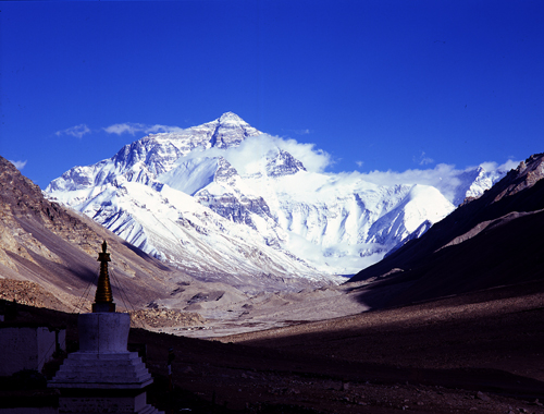 6月的一天,向往西藏已久的我背上摄影器材,开始了为期一个月的阿里之旅。从拉萨驾车出发,向西南行驶,经一天的奔波,天黑时到达日喀则。第二天一大早,便向珠峰进发。当汽车行进到加乌拉山山口时,我呆住了--在山口的南侧,喜玛拉雅山脉连绵不绝的雪山就在眼前,无数个金字塔般的山峰在夕阳的映照下染成了红色,我站在那里,忘记了拍照,那一刻我感觉自己站在了世界之巅。