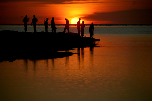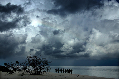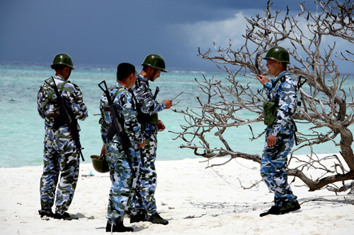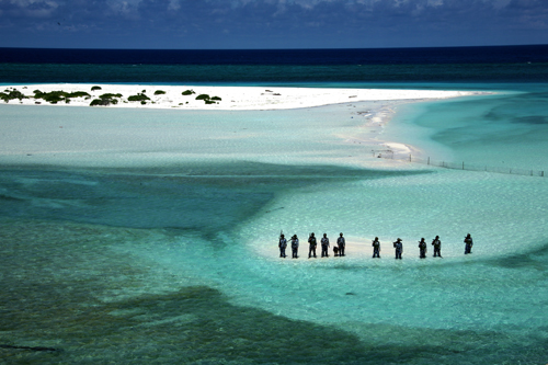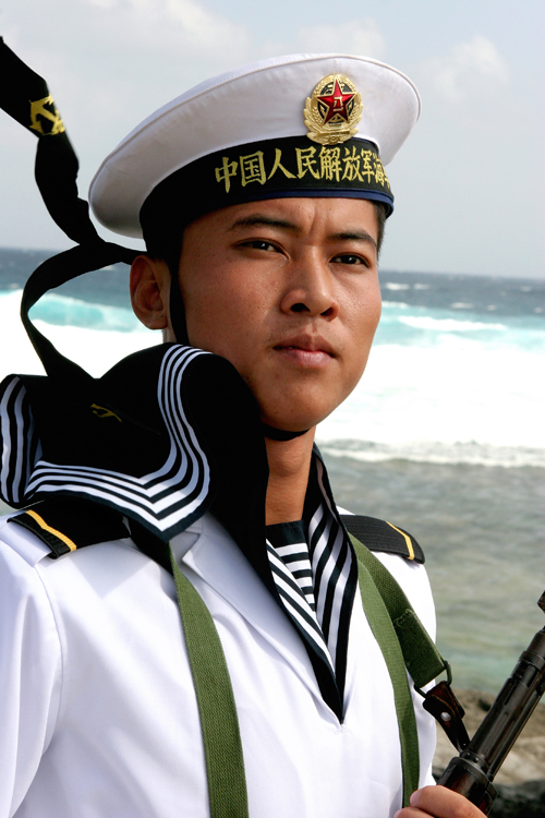 右手第三名战士送我一篇散文,题目是《梦落珊瑚岛》。是一篇美不胜收的佳作。美文触动了我,于是就有了这一幅题目在前,拍摄在后的作品。