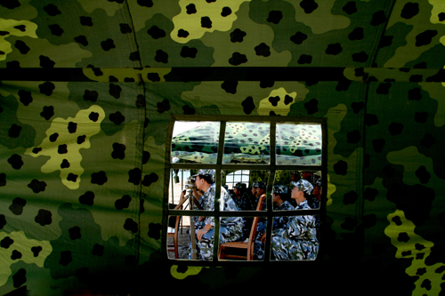 这是西沙官兵实弹射击时拍摄的。西沙官兵几乎全天候地穿着海洋迷彩。当一群海洋迷彩列队从你身边走过时,扑鼻而来的总是浓烈的汗酸味。这是属于海岛军人的味道。