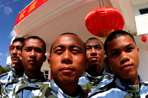 这是入伍一个月的新兵们。黝黑的肤色,是阳光、海风和守岛岁月留给西沙人最优雅的人体彩绘和最高贵的青春印记。