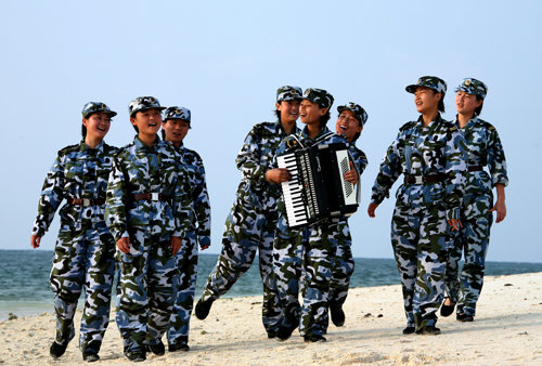 女兵在西沙绝不是点缀。许多岗位上都有她们的身影。当然,有她们在,男兵们会表现得(甚至要装得)更加坚强。