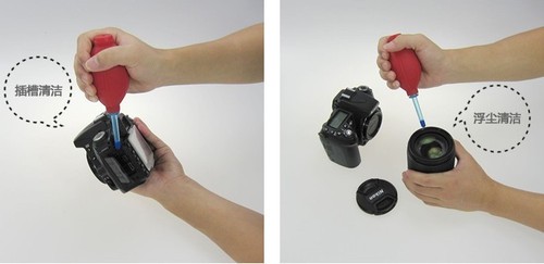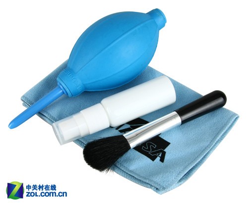 俗话说的好“常在河边走,哪有不湿鞋”,在长时间频繁使用相机后难免会沾上一些灰尘,镜片上也会沾上各种污物,而光学取景窗目镜、快门与模式转盘之间、镜头环和镜头框这些“卫生死角”也非常容易淤积灰尘。下面我们就要主动出击,清洁相机。说到清洁相机笔者首推的就是四合一清洁套装,一个典型的四合一套装包含一个毛刷,一个气吹,一块擦镜布,和一瓶清洗液,使用简单而且便宜。气吹可以吹掉少量的异物以及灰尘(千万不要用嘴吹,吹出唾沫星自找麻烦),在有大量灰尘时就轮到毛刷上场了,毛刷材质柔软,不伤镜头,特别适合扫除镜头边框灰尘,与气吹配合使用效果更好。