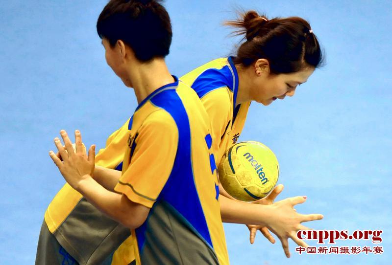 9月1日晚,中国第七届城市运动会乌鲁木齐市对澳门的女子手球比赛。