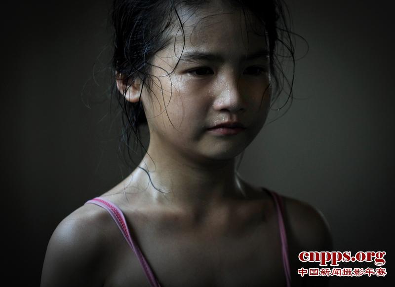 2011年7月5日,福州市体育运动学校蹦床馆,一名小女孩脸上的汗水与泪水交织在一起。