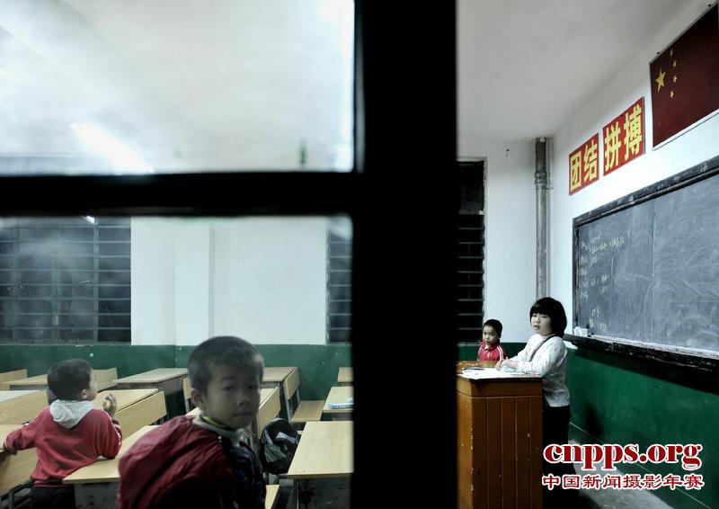 2011年12月7日,福州市体育运动学校,几名练蹦床的小孩在教室等待上文化课
