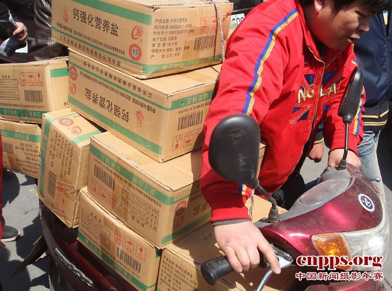 图为市民在南京一家盐业公司抢购食盐,能搬多少搬运多少。