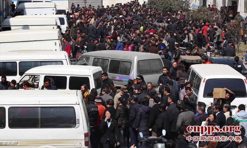 图为闻讯而来的市民将南京一家盐业公司围的水泄不通。