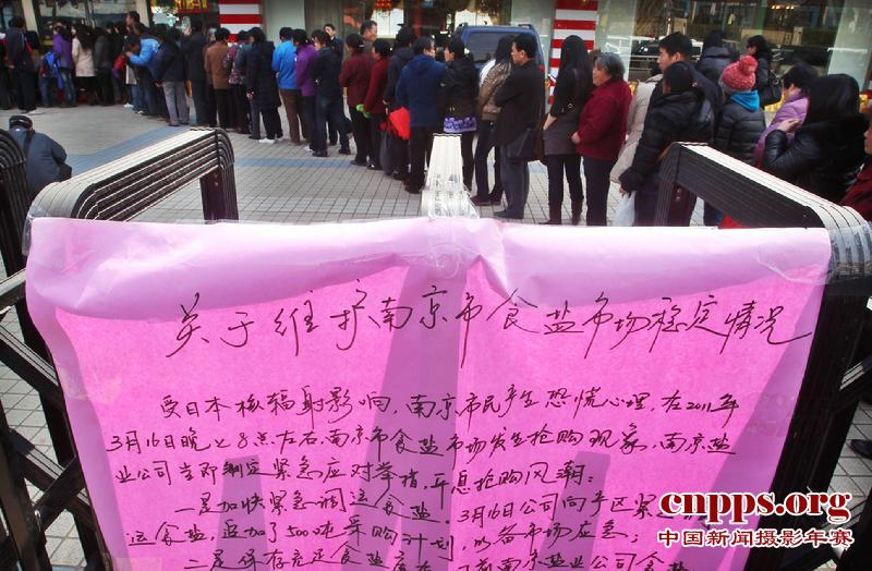 图为政府张贴的辟谣通告,仍然挡不住人们买盐的恐慌心理。
