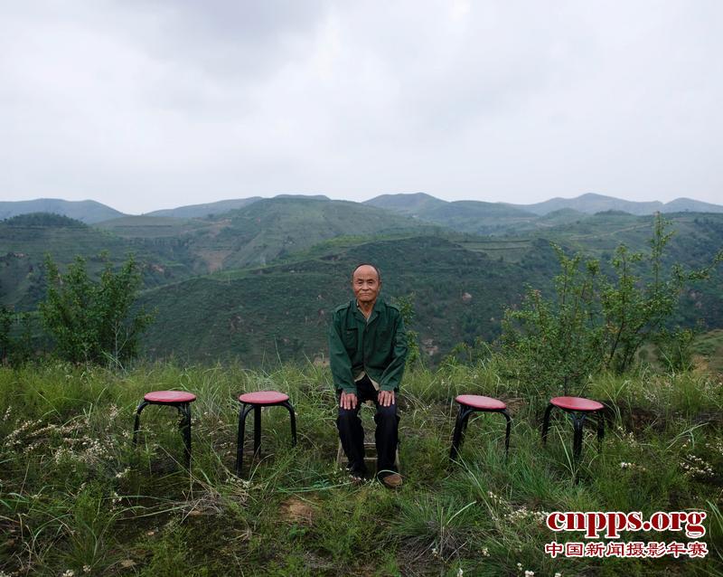 陕西省靖边县刘界庄村,68岁的贺爱良在家附近的山顶上(8月25日摄)。贺爱良的老伴去世多年,3个孩子在外面打工。