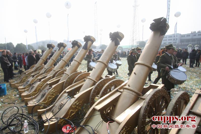 葬礼现场一字排开的礼炮