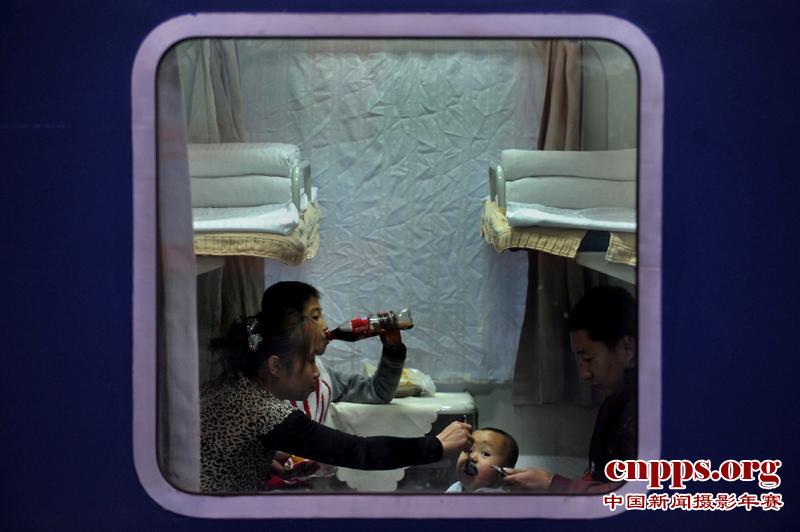 2011年2月8日,在辽宁沈阳,旅客在沈阳北至深圳的T188次列车上等待开车。