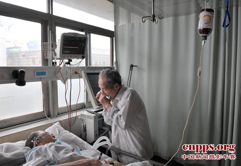 一位护士说,郑老先生的口琴声感动了所有在场的人。(第二届中国新闻摄影年赛日常生活类单幅金奖)