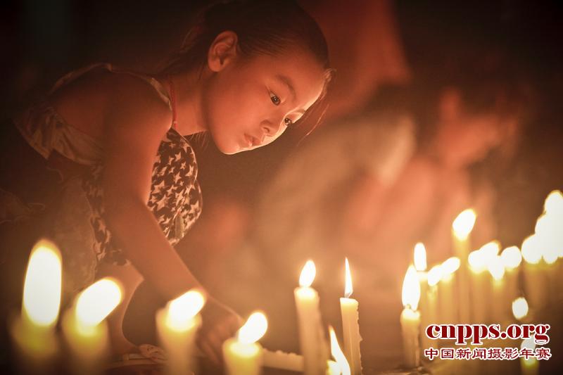 2011年7月25日晚,在浙江温州市世纪广场,群众自发举行悼念“7.23”动车事故遇难者活动。