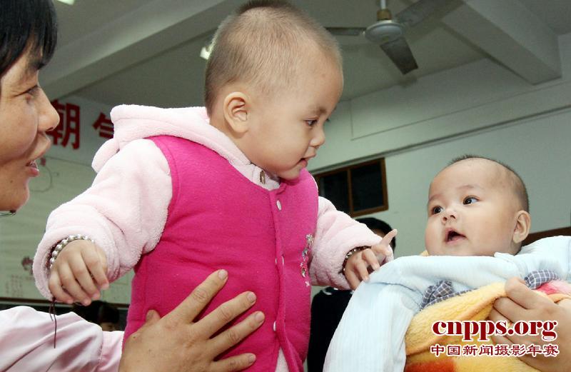 12月1日,两名被解救的被拐儿童在福建省莆田市福利院玩耍。