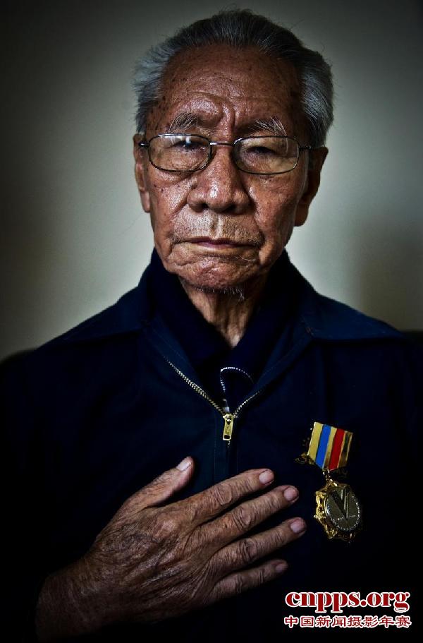 2011年5月16日,安徽合肥,面对祖国人民的热情欢迎,现年93岁的安徽太和籍远征军老兵刘大江心情久久不能平静。