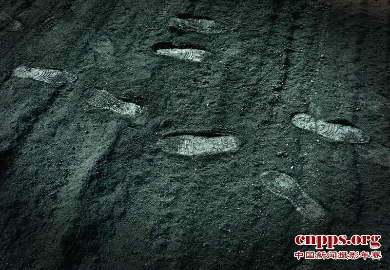 2011年11月14日,福州市区一家正在拆迁的化工厂车间,印在煤灰上的脚印。