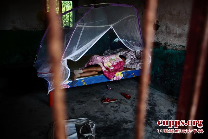 2011年5月29日,一名儿童在临时安置点睡觉。在船上出生和长大的渔民们,短时间内很难适应陆上的生活