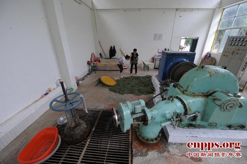 古水河上的麻湾电站每小时发100度电,值班员在机房里堆放农作物。