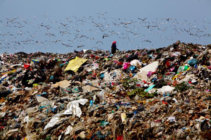 2011年10月12日,中国辽宁省大连市金州区一垃圾场,正在觅食的上万只海鸟被拾荒者惊起后在垃圾山上空盘旋。这个垃圾场紧挨着渤海湾,每天有大约数百吨生活垃圾被运到这里。(第二届中国新闻摄影年赛自然及环境类组照金奖)