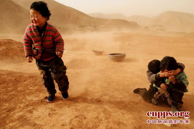2011年2月6日下午15点左右,今年第一场沙尘暴袭击了宁夏西海固地区。同心县兴隆乡黄谷村几名正在玩耍的孩子被突然刮起的风沙几乎吹倒。