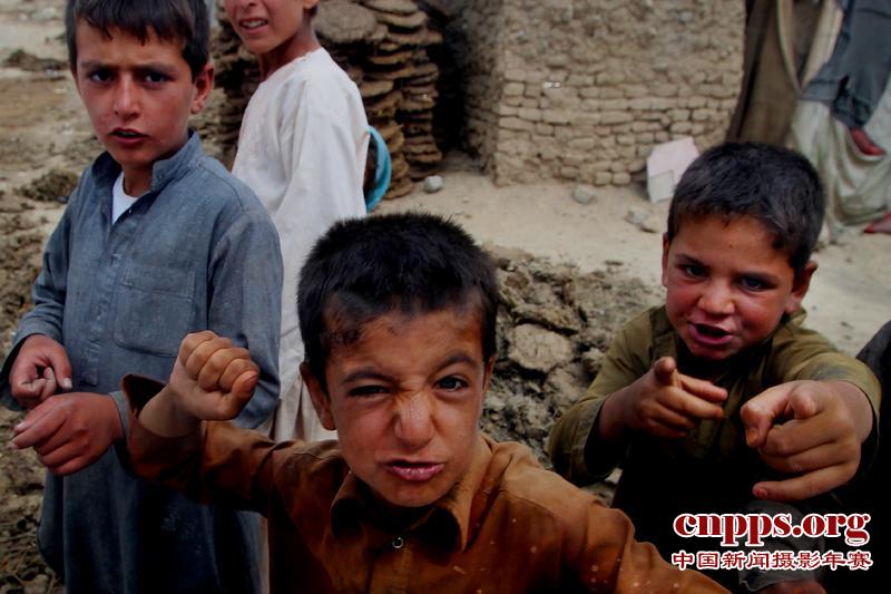 2011年8月13日,喀布尔Qalae Wazir区Qargha路旁的贫民窟,来访者一旦不能满足男孩们的乞讨需求,就会遭遇来自对方的极大敌意。