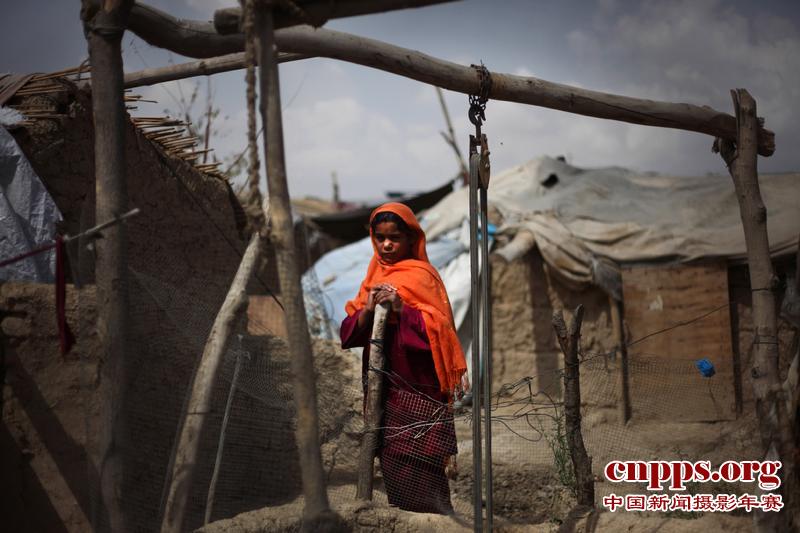 2011年8月13日,喀布尔Qalae Wazir区Qargha路旁的贫民窟。