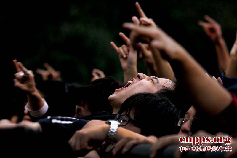 年轻的乐迷们跟着音乐“咆哮”。