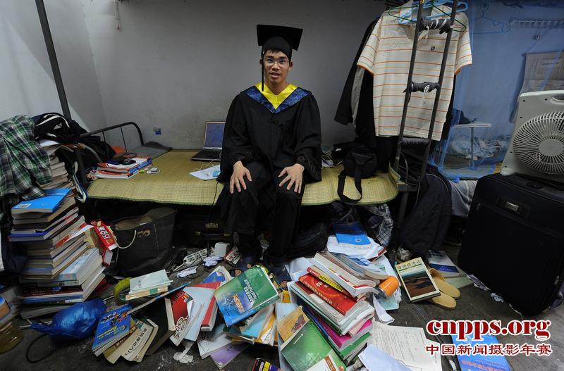 6月24日,合肥工大大学宿舍,一名学生在宿舍里留影。