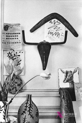 摆放在毕加索家中客厅的公牛头,1957年