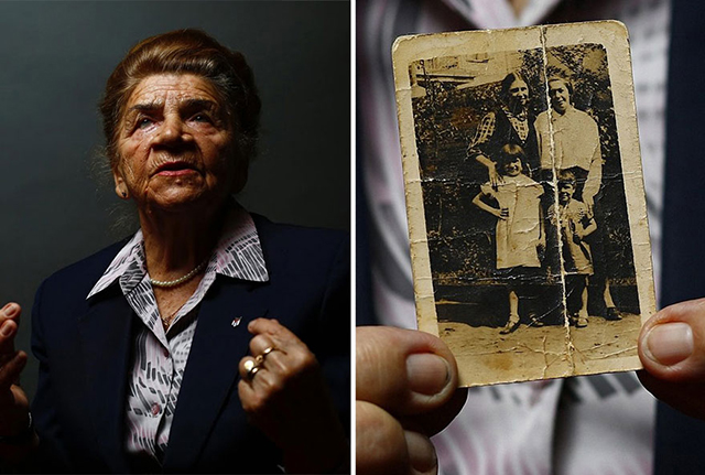 Maria Stroinska,82岁,拿着战前的一家合照。(摄影:Kacper Pempel)