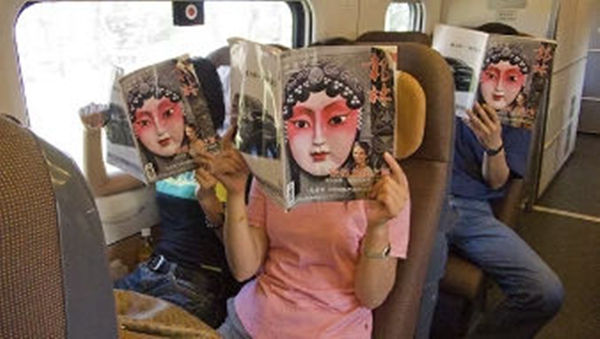 一上火车,他就端着相机在晃动的车厢里来回走动,寻找拍摄的对象——有趣、有故事的,这是他最主要的标准。例如男人抱着孩子喂奶粉,“这一般是女人做的,看起来比较有意思”,或者是火车票实名制、导盲犬上高铁这种标志性事件。