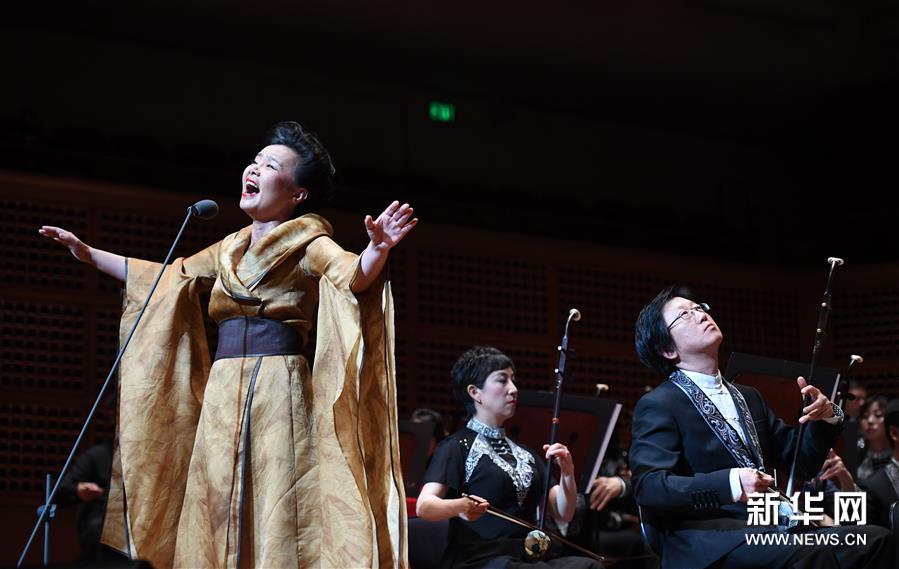 4月10日,在美国旧金山,歌手龚琳娜演唱民歌《小河淌水》。由中国广播艺术团主办的2018“魅力中国”演出10日在旧金山举行。演出中包含中国戏曲、舞蹈、声乐等多种艺术形式,并通过管弦乐队与西洋美声唱法的融合、中国乐器与西洋乐器的对话,充分展现民族管弦乐的艺术魅力。新华社记者吴晓凌摄