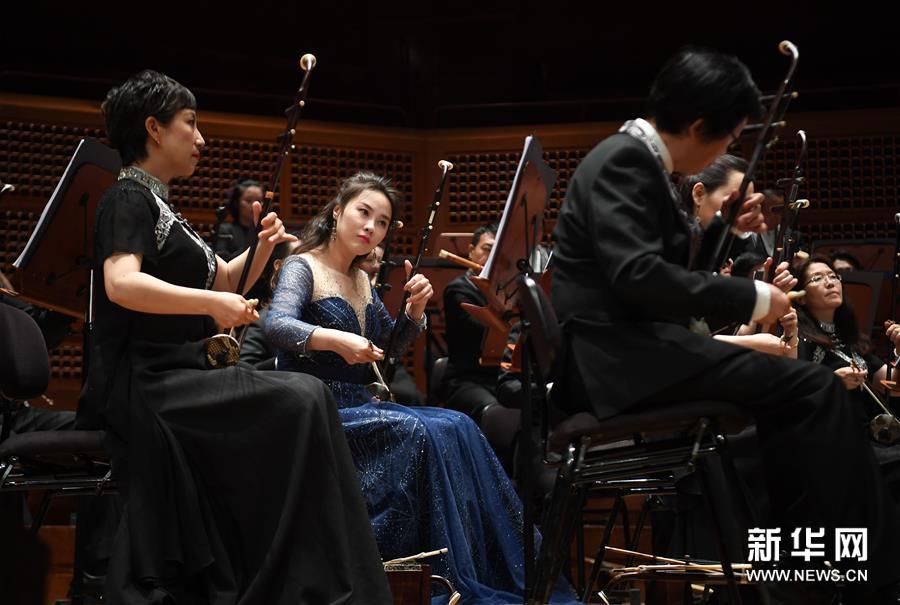 4月10日,在美国旧金山,乐手演奏民族管弦乐《金蛇狂舞》。由中国广播艺术团主办的2018“魅力中国”演出10日在旧金山举行。演出中包含中国戏曲、舞蹈、声乐等多种艺术形式,并通过管弦乐队与西洋美声唱法的融合、中国乐器与西洋乐器的对话,充分展现民族管弦乐的艺术魅力。新华社记者吴晓凌摄