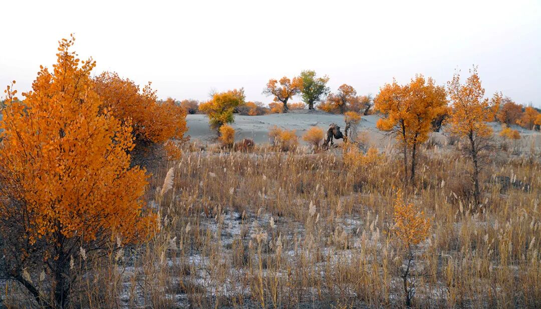 金秋10月,塔克拉玛干沙漠里的胡杨金叶婆娑,迎来了它最美的季节。中国冶金报记者 顾学超摄