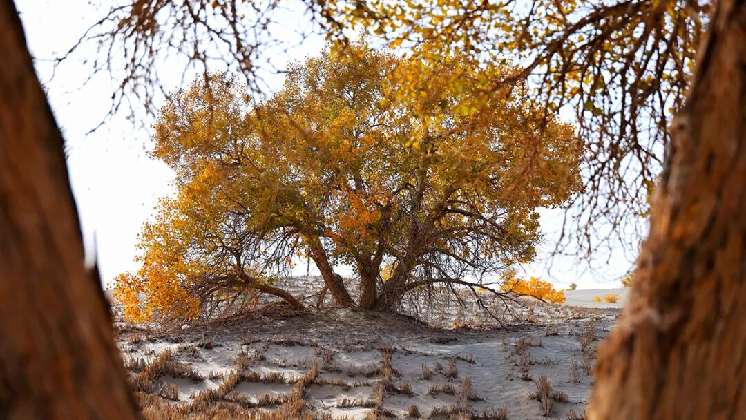 10月23日中午,在新疆塔克拉玛干沙漠边缘拍摄的胡杨《生命的延续》。赵树宴 摄
