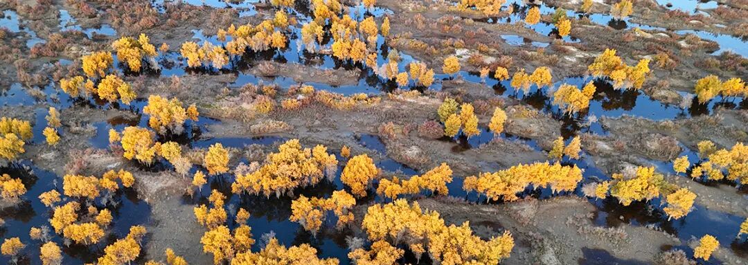 10月24日,新疆阿拉尔市塔河源头的胡杨层林尽染。科普时报记者 季春红 摄