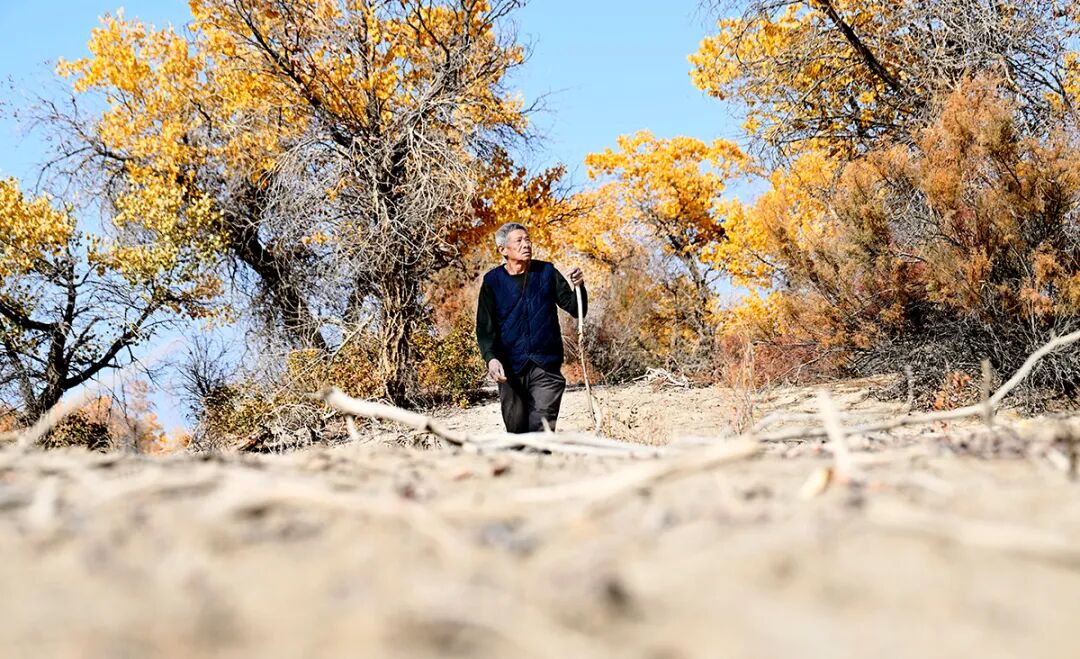 在十二团国家级重点公益林管护中心,72岁的李华印穿梭在胡杨林中进行巡林。干了16年护林员的李华印于2014年退休后,继续坚持巡林十余个年头。 人民政协报记者 齐波 摄