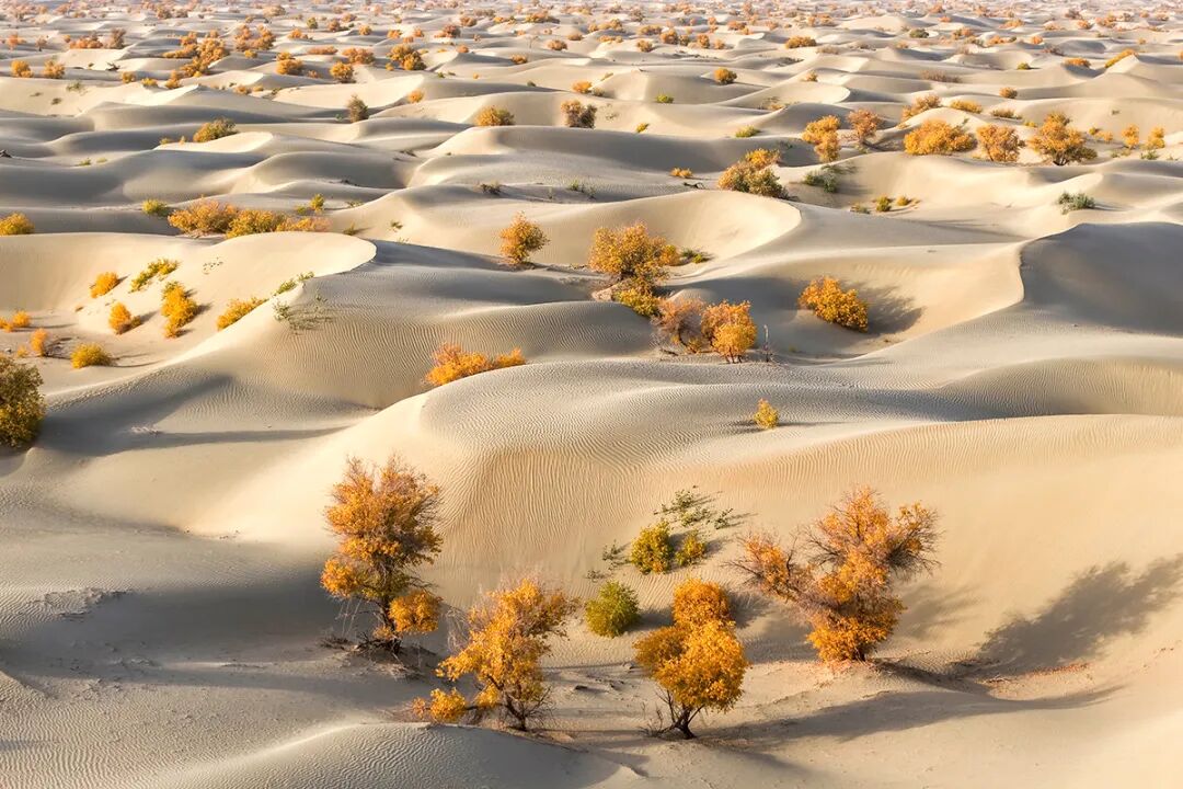 生态改善催生产业繁荣。在阿拉尔市六团,连片的苹果园喜迎丰收;在十二团塔南镇十五连的棉田里,雪白的棉花迎风吐絮,大型采棉机行走其间,一次性完成采摘、压缩、打包等工序,将一朵朵棉花变成一颗颗重约两吨的“金蛋蛋”。随着防沙治沙成果的不断巩固,阿拉尔市的生态效应逐渐凸显,沙生经济林果、沙漠文化旅游等特色产业不断发展壮大,处处焕发勃勃生机。