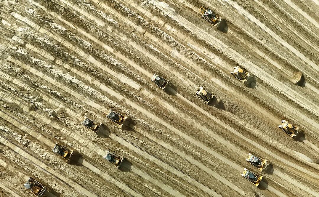 10月24日,第一师阿拉尔市塔里木河干流生态综合治理项目现场,数十台推土机依次排开平整土地。该项目自2021年启动以来,至今累计建设规模已超50万亩。 科普时报记者 季春红 摄