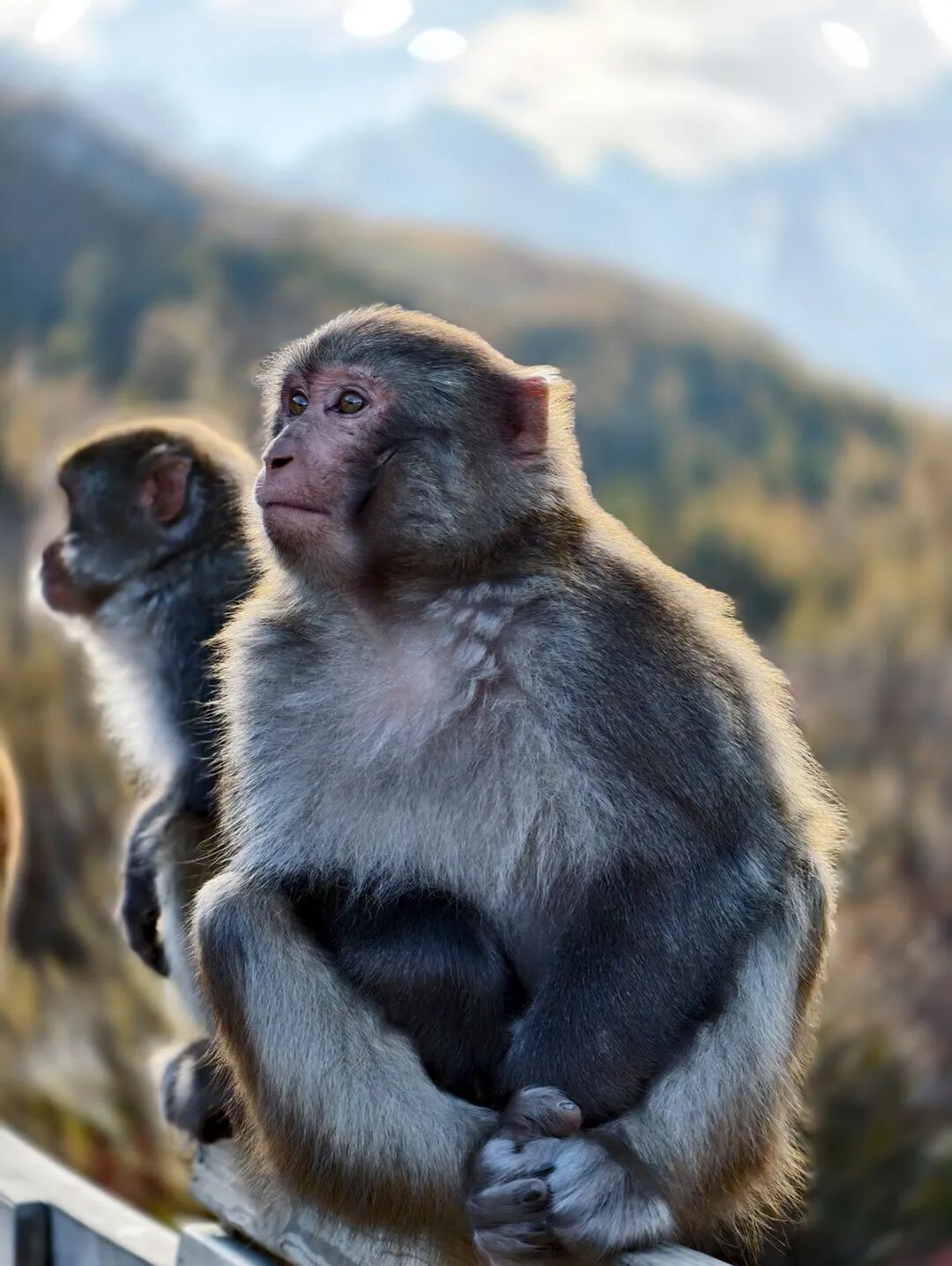 在稻城亚丁景区,藏酋猴在晒太阳